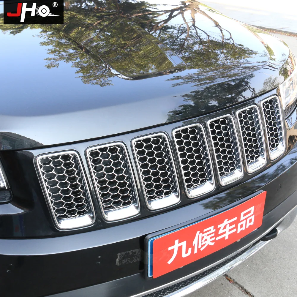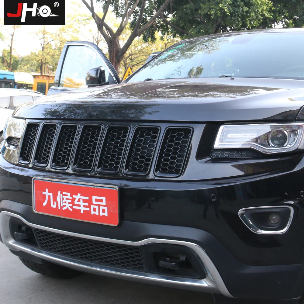 JHO ABS Front Grille Grid Insert Mesh Vent Outlet Bezel Cover Trim For Jeep Grand Cherokee 2014-2018 Car Accessories Garnish Kit