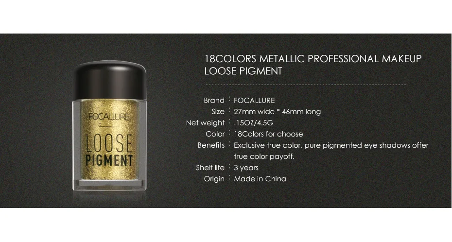 Focallure18 Colors Glitter Eye Shadow Loose Powder Shimmer Pigment Eyeshadow Sparkly Shadows Single Eyeshadow Pallete Makeup