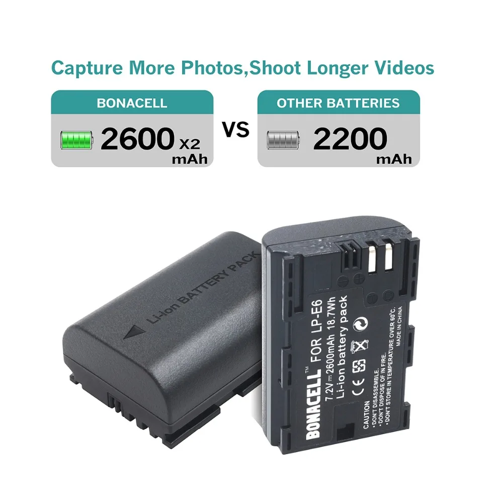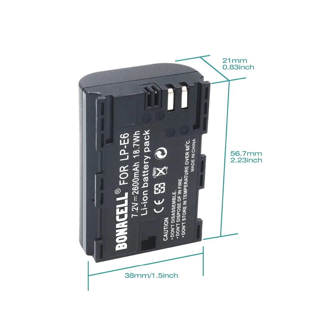Эта запасная батарея предназначена для камеры Canon LP-E6, это своего рода литий-ионная перезаряжаемая батарея, вы можете носить ее в любом месте в любое время, очень удобно в использовании. И не имеет эффекта памяти. Может быть заряжен или разряжен по мере необходимости без потери мощности. Функции такие же, как у OEM батареи.