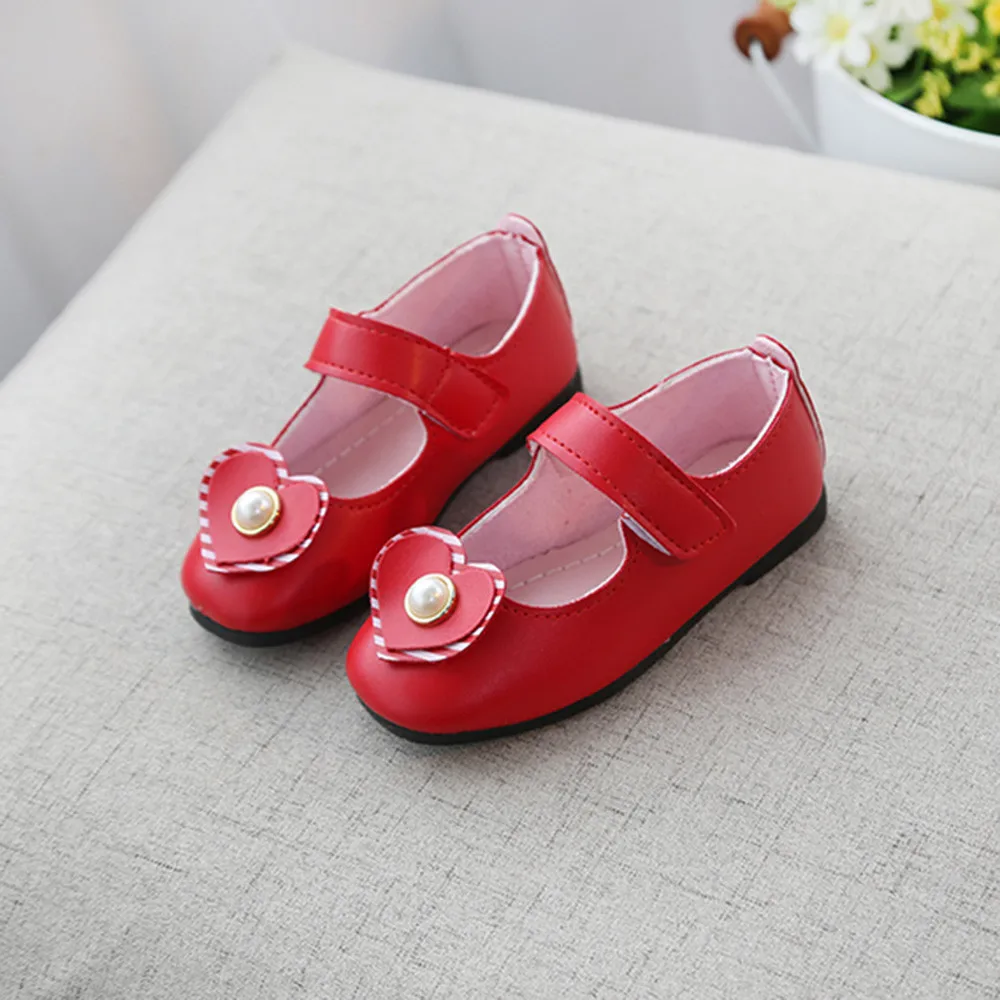 Повседневная однотонная кожаная обувь принцессы с жемчугом для маленьких девочек