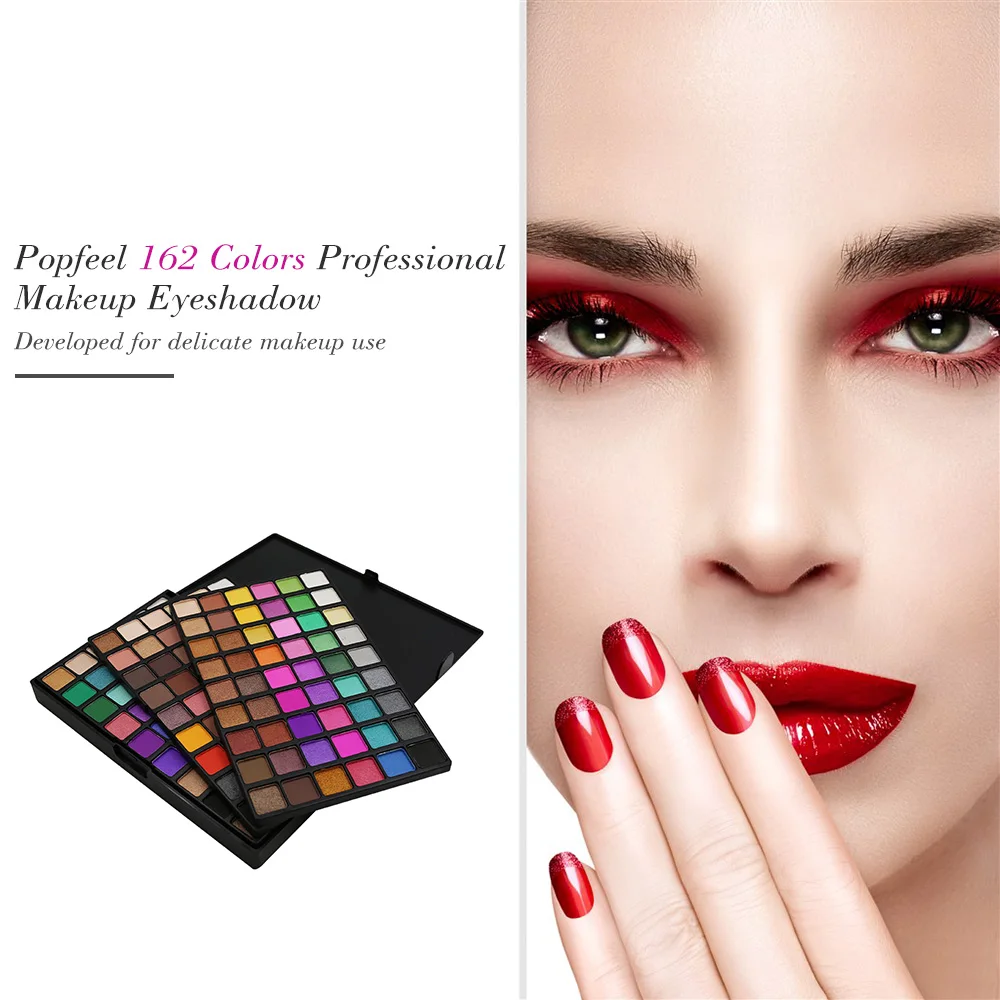 162 цвета палитры теней для век, мерцающие и матовые тени для век включены, удовлетворяя все ваши потребности в макияже для глаз.