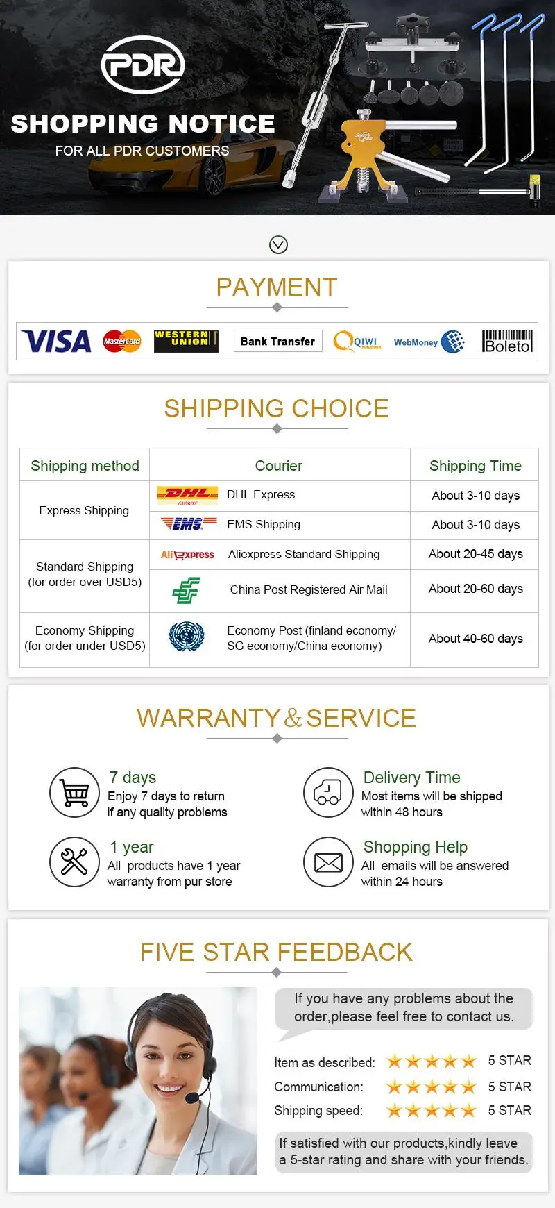 О: Не волнуйтесь, если вы нажали его случайно. Ваша посылка будет отправлена как можно скорее. Просто следуйте номеру отслеживания для обновления. 5-звездочный отзыв очень ценно для нас, при получении вашей посылки.