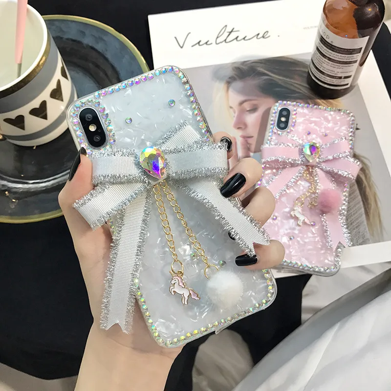 Роскошный милый ручной работы лента с бриллиантами Лук модный чехол для iPhone X XS XR XS MAX чехол Tpu Funda Bling Rhinestone Telefon Kilifi