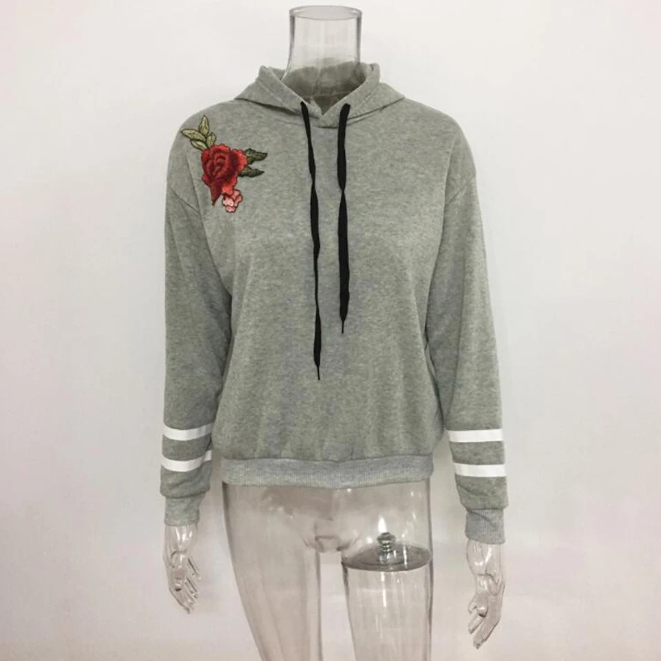 Милые женские толстовки с вышивкой розы, Повседневная Толстовка Poleron Mujer, туника в полоску с длинным рукавом, Красный пуловер, 2019