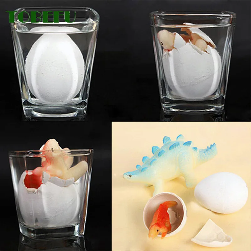 Положите яйца в воду. Через некоторое время Динозавры в яйцах медленно разобьют скорлупу на яйцах, так же, как куры инкубации. Это потрясающе! Не упустите эту возможность, дети.