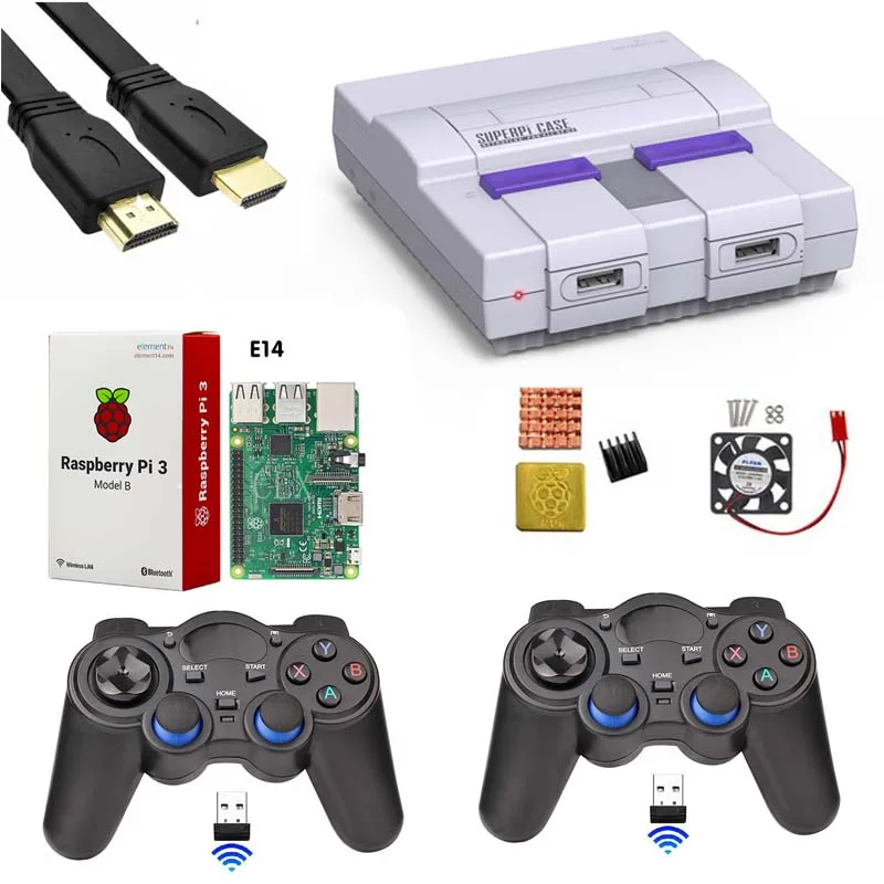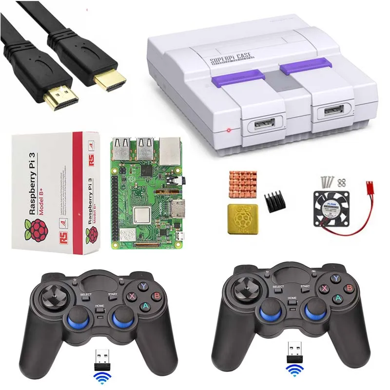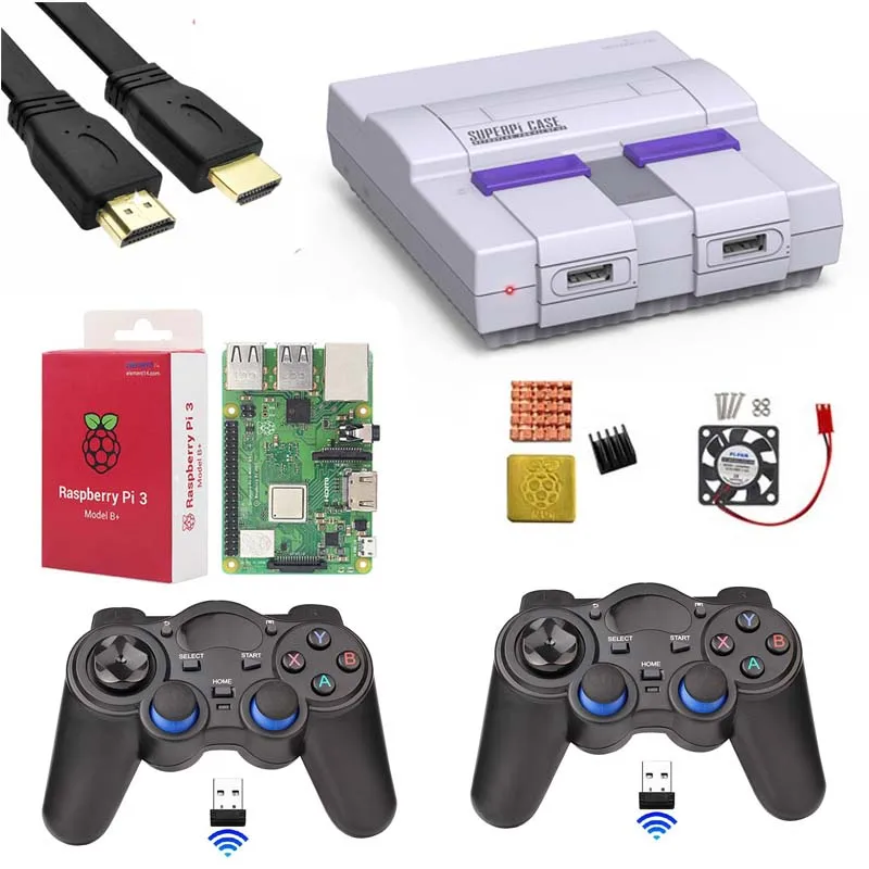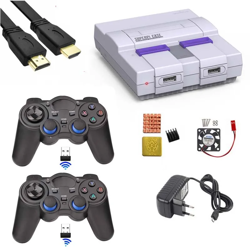 Чехол Retroflag SUPERPi-U NESPi чехол + Raspberry Pi 3 Model B/B + + HDMI + 3A мощность + радиатор + вентилятор + HDMI + 2,4 ГГц беспроводной геймпад для RPP 3B/3B +