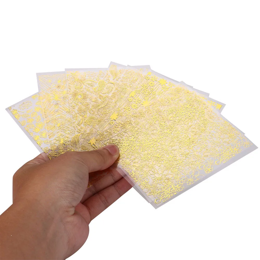 8 шт золотые 3D металлические паста для ногтей наклейки для ногтей золотые наклейки на заднюю панель серии BP