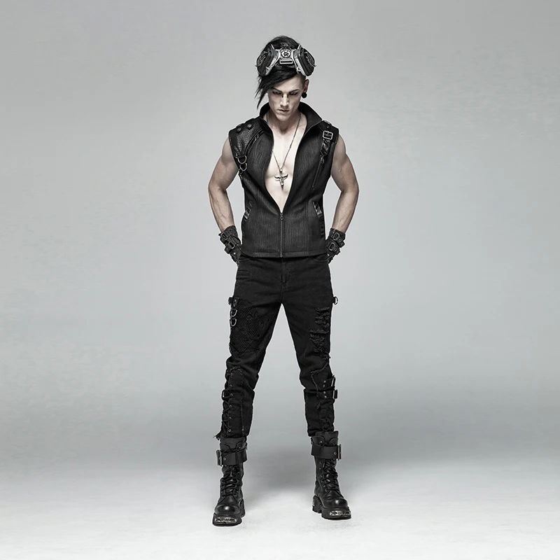 1. Весь жилет изготовлен из темно-текстурированной микроэластичной ткани. 2. Аппаратное украшение на плечах. 3. Подходит для версии. 4. Не съемная застежка tab украшения с двух сторон.