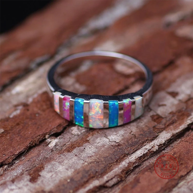 Женское Обручальное кольцо из нежного сплава с розовым, голубым, белым огненным опалом, серебряного цвета, хит продаж, новинка 2019