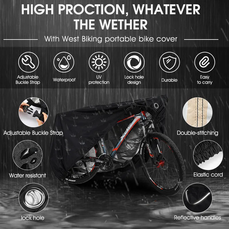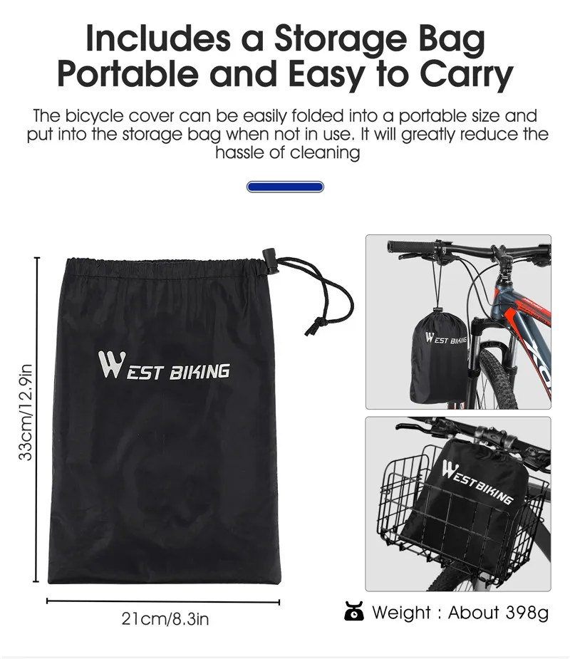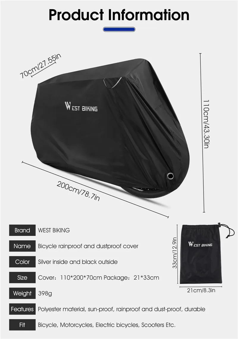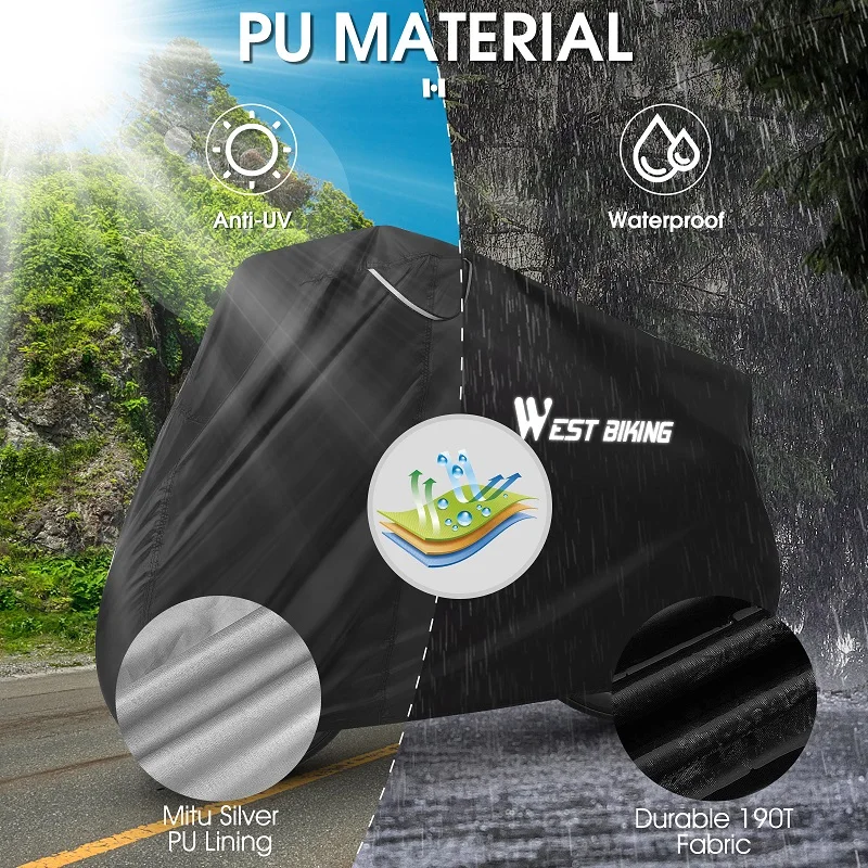 WEST BIKING водонепроницаемый чехол для велосипеда, портативный пылезащитный чехол от солнца, дождевик для улицы, для скутера, мотоцикла, MTB, шоссейного велосипеда, защитное снаряжение