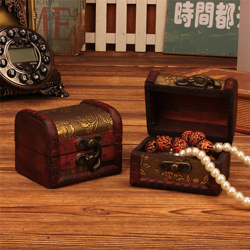 Шкатулка для ювелирных изделий винтажная деревянная коробка ручной работы с Мини металлическим замком для хранения ювелирных украшений с жемчугом