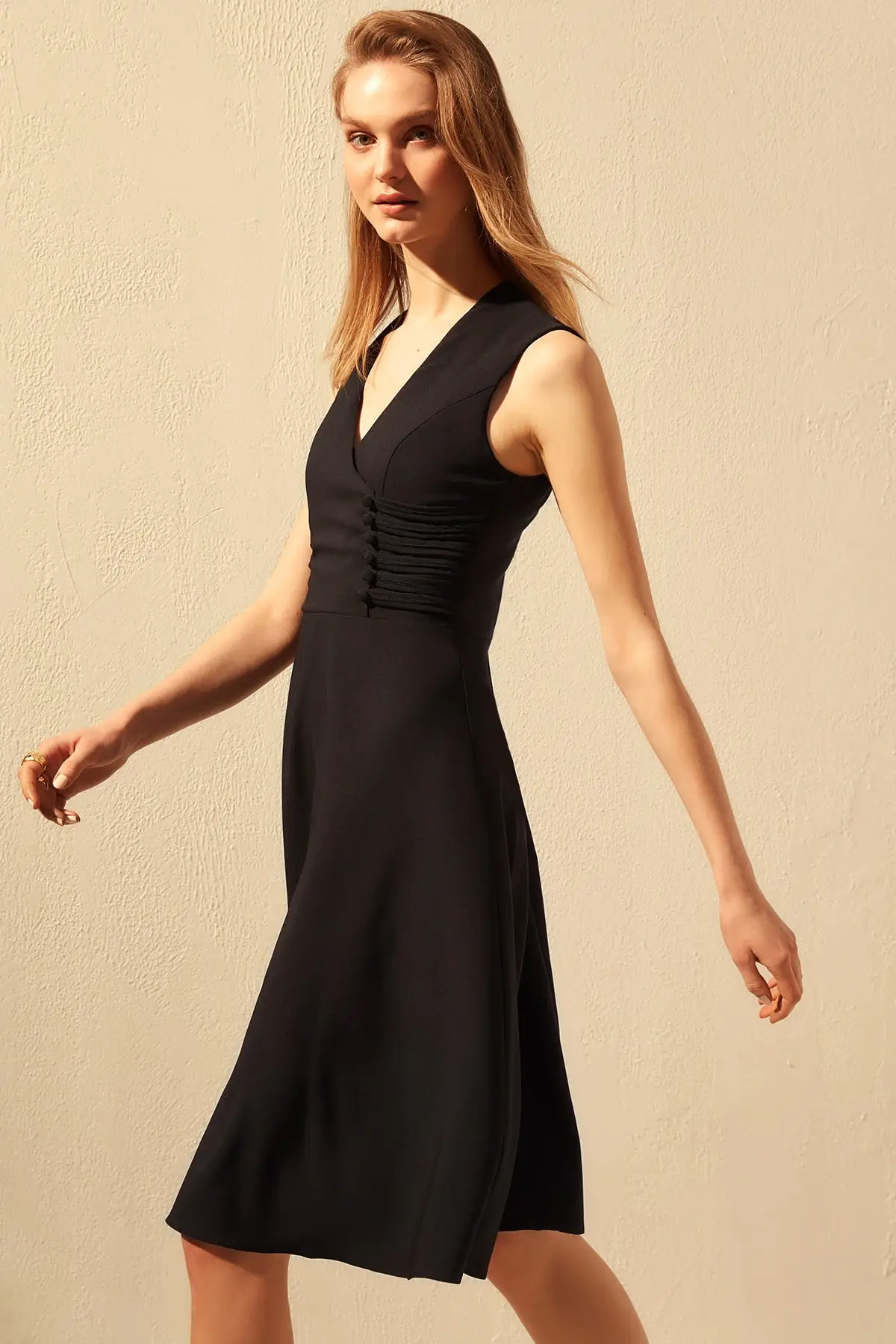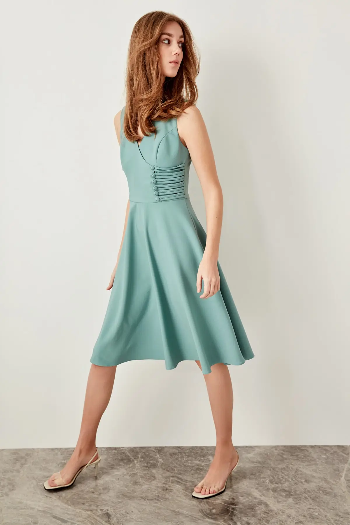 Размеры модели: Рост: 1,78, грудь 87, талия 60, бедра: 89; изделие на модели S/36 размер., 95% полиэстер 5% эластан, тканая ткань; наши продукты будут отправлены брендом Trendyol.