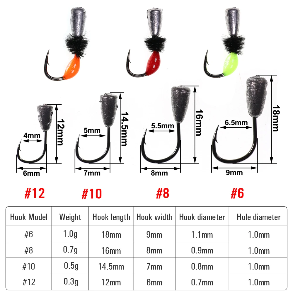 Материал: свинец + крючок из высокоуглеродистой стали Размер: #6 #8 #10 #12(4 размера s на картинке) Цвет: красный, оранжевый (УФ), зеленый (УФ). Упаковка: 6 шт./кор. Применение: ледовая рыбалка, приманка для рыбалки, нахлыстом и т. д. Примечание: 1: с учетом причины, по которой светильник, фактический продукт может иметь цветовую разницу s светильник, спасибо за понимание. 2: При ручном измерении возможны незначительные погрешности. Пожалуйста, поймите! 3: по специальному запросу, пожалуйста, напишите нам перед заказом, спасибо.