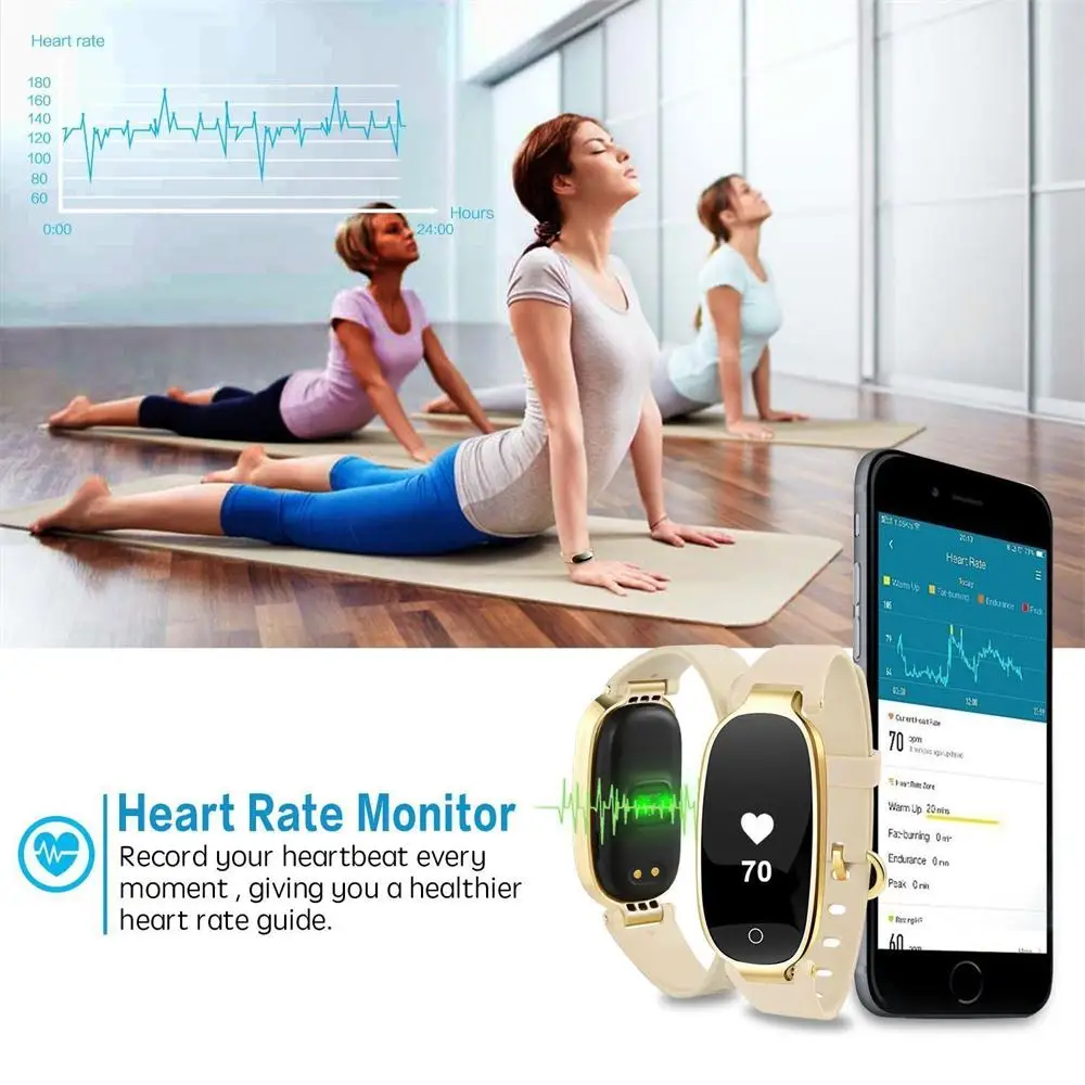 Особенности:Калории, шагомер, расстояние, удаленная камера, водонепроницаемый, пылезащитный, монитор сна, будильник, идентификатор звонящего, напоминание о сообщениях, длительное время ожидания, Поиск телефона, монитор сердечного ритма, монитор артериального давления