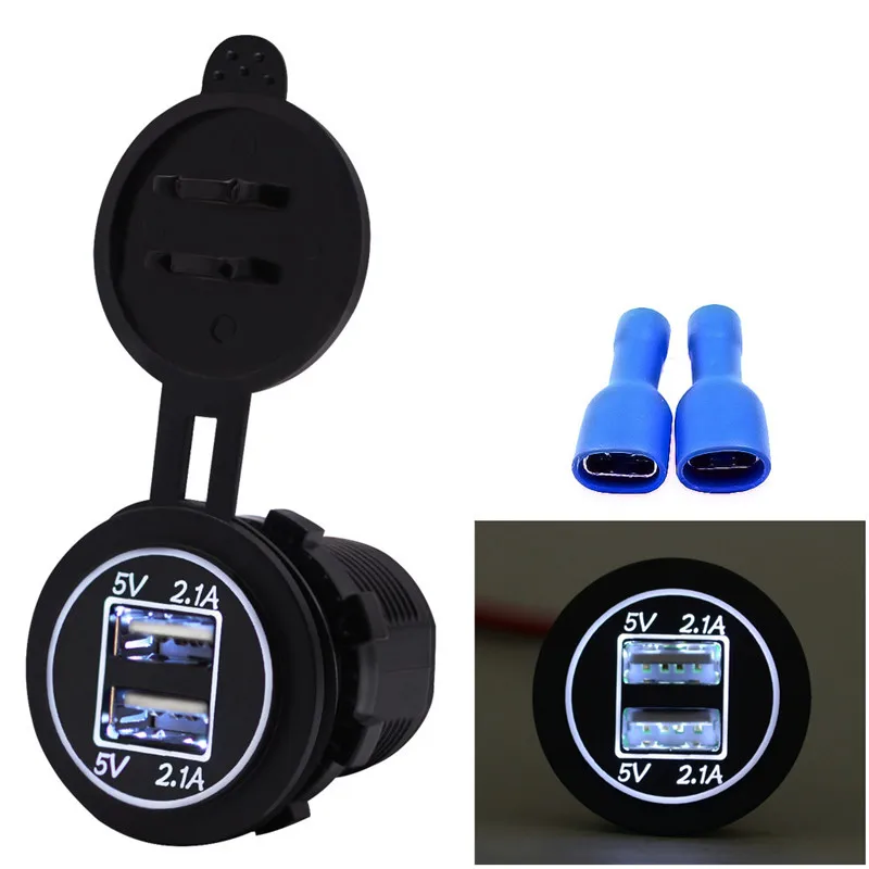 5V 2.1A двойное USB зарядное устройство гнездо адаптера питание розетка для 12В 24В мотоцикла автомобиля