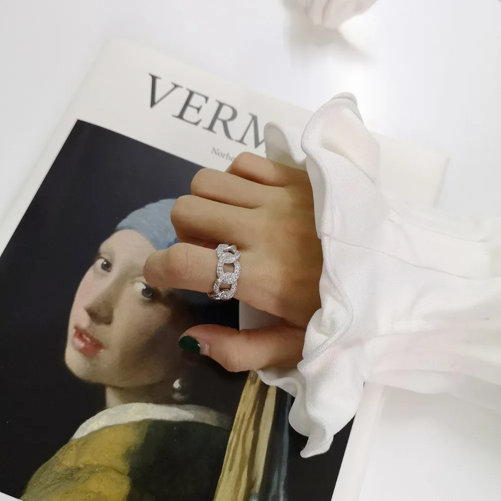 Название: Настоящее серебро 925 пробы, комплект ювелирных украшений из циркония, регулируемое кольцо с цепочкой twist crud J296