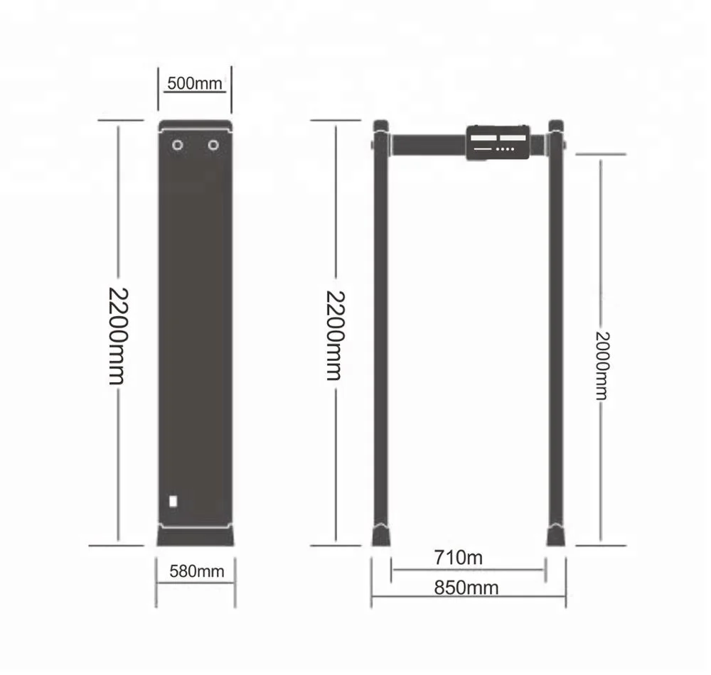 ▶Способен обнаруживать широкий спектр опасных металлических предметов, даже для монет, когда кто-то проходит, положение оружия на человеке будет отображаться с помощью светящихся светодиодов с обеих сторон панелей. Он может обнаруживать одновременно более двух металлов в разных частях тела.