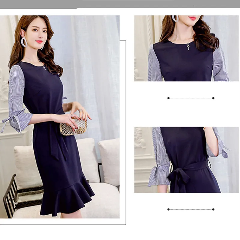 Элегантное темно-синее платье; сезон весна-лето; повседневная одежда