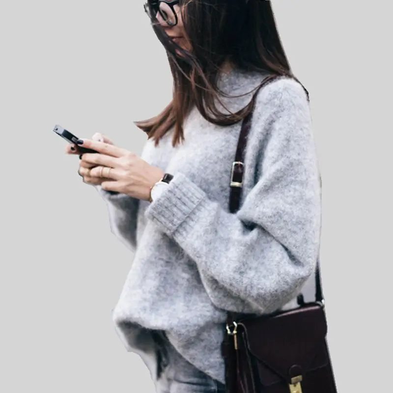 Женский свитер с круглым вырезом, однотонный Повседневный свободный винтажный пуловер в европейском стиле, весна 2019