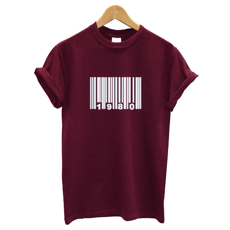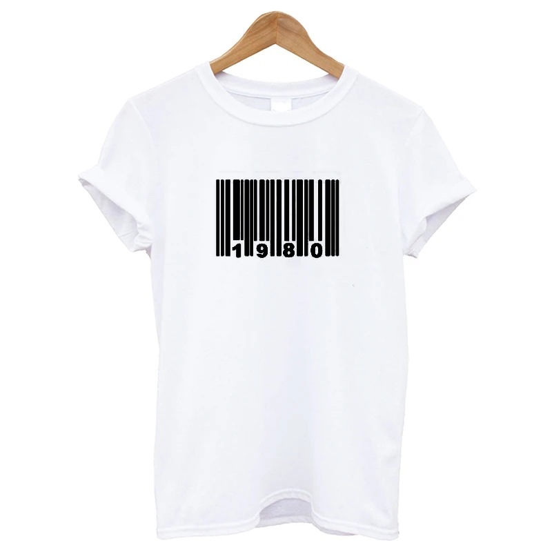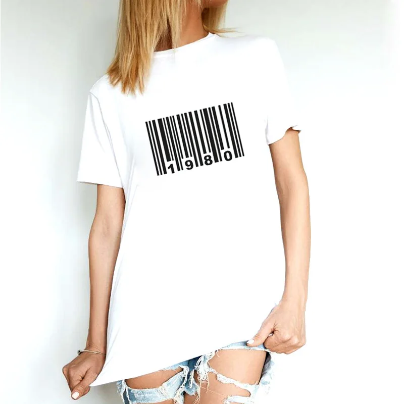 39-я футболка «С Днем Рождения», подарок, женские футболки с графикой, штрих-код, 1980год рождения, футболка, подарок на заказ, женские топы, 100% хлопок, мягкая