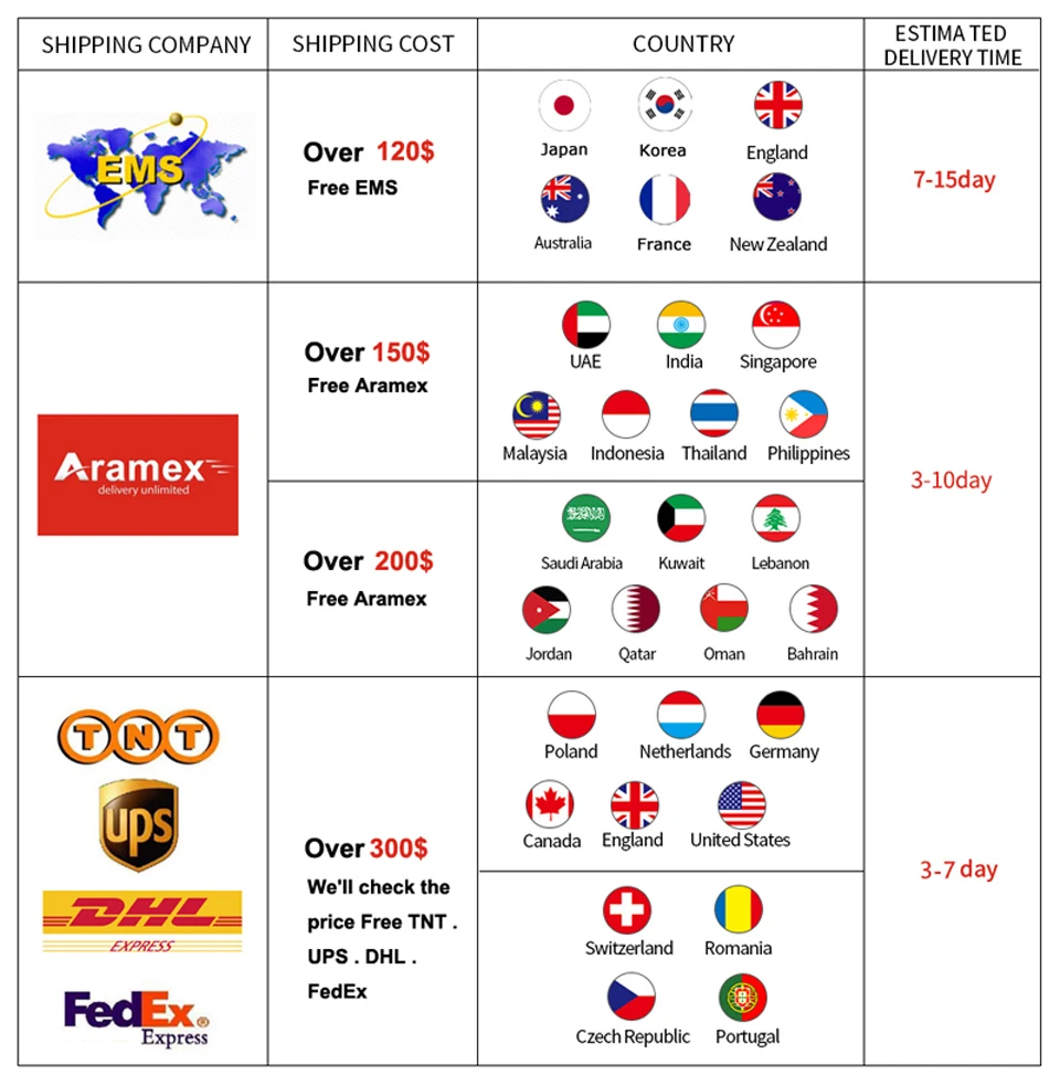 Вы можете выбрать другой способ доставки, мы можем отправить их в посылка через FedEx/DHL/UPS для вашего посылка!