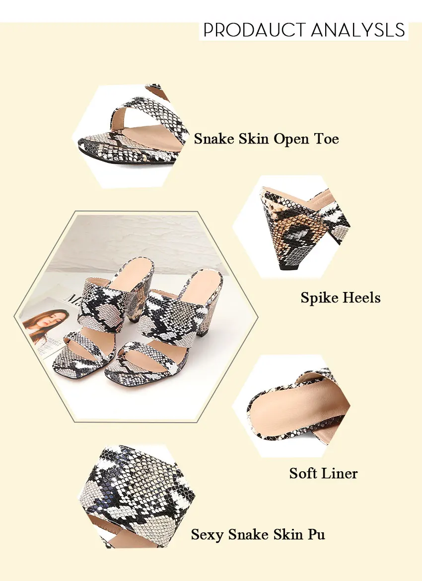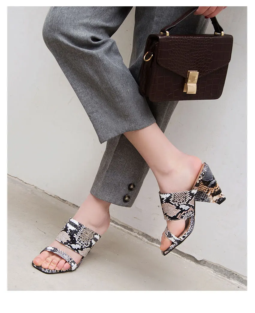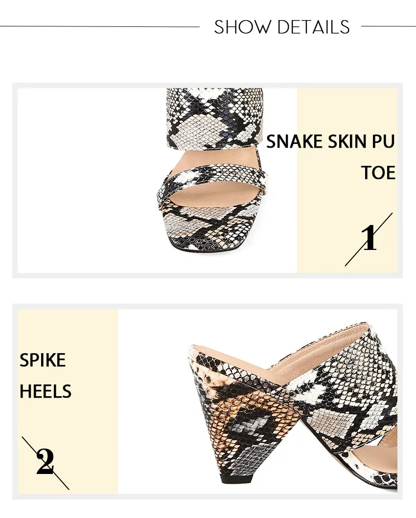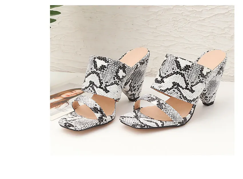 WETKISS/женские шлепанцы на высоком каблуке-шпильке; женская обувь с открытым носком; шлепанцы со змеиным узором; женские мюли; женская обувь; сезон лето; большие размеры 44; 2019