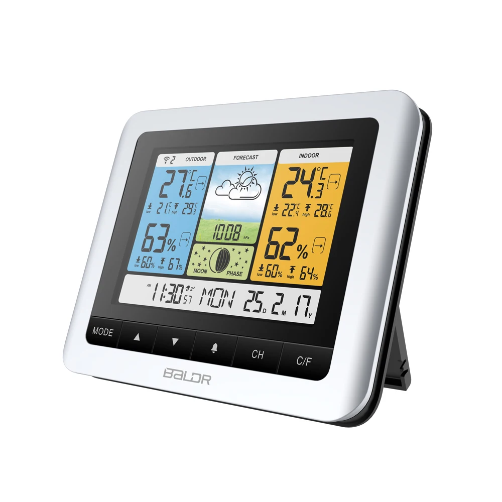 4. цветной дисплей погодной станции стоит вертикально для настольного использования или является настенным. Это лучшая Погодная станция для людей, которые хотят привлекательный дизайн и надежную информацию о погоде, чтобы уверенно планировать на следующий день.