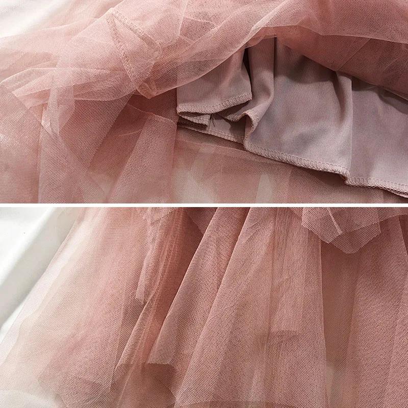 FencySweet/Весенние Новые Многослойные Длинные сетчатые юбки для торта юбка принцессы с высокой талией и оборками винтажная многослойная Тюлевая Женская плиссированная юбка