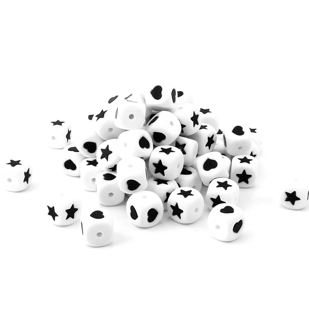 Keep & Grow 100 шт. силиконовые бусины с буквенным принтом в виде звезд/сердец, детские жевательные прорезыватели для зубов, детские жевательные игрушки с буквенными бусинами, BPA Free