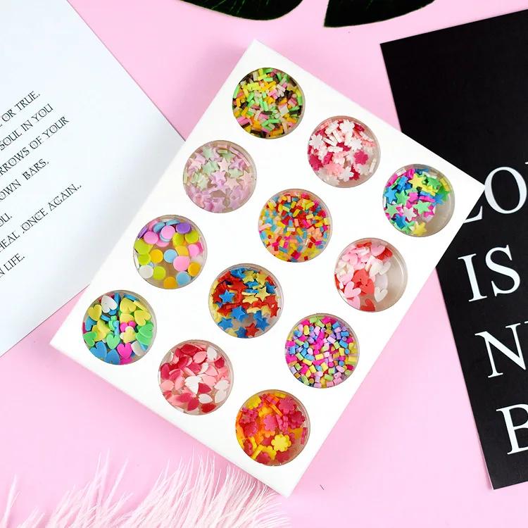 12 типов/набор ручных Diy хрустальных поставки слаймов для фруктов, цветов, ломтиков, ногтей, художественных насадок, аксессуаров, декорационных игрушек для детей