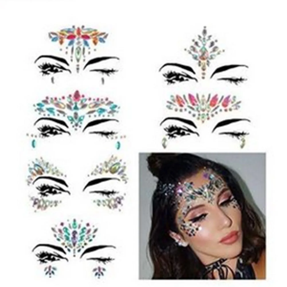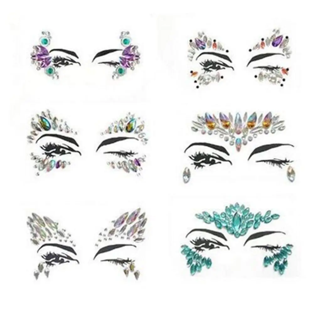 Лица драгоценности блеск татуировки горный хрусталь Акриловые Стикеры s для фестиваля вечерние Хрустальная Русалочка глаза слезы стикер для драгоценных камней 6 шт./компл.