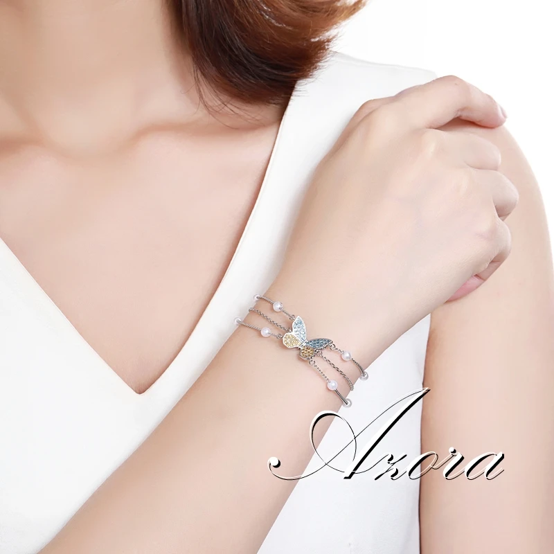 Браслет AZORA цвета шампанского и синего кубического циркония с бабочкой на запястье, Очаровательная цепочка на запястье, подарок на День святого Валентина для женщин, Свадебная вечеринка TS0204