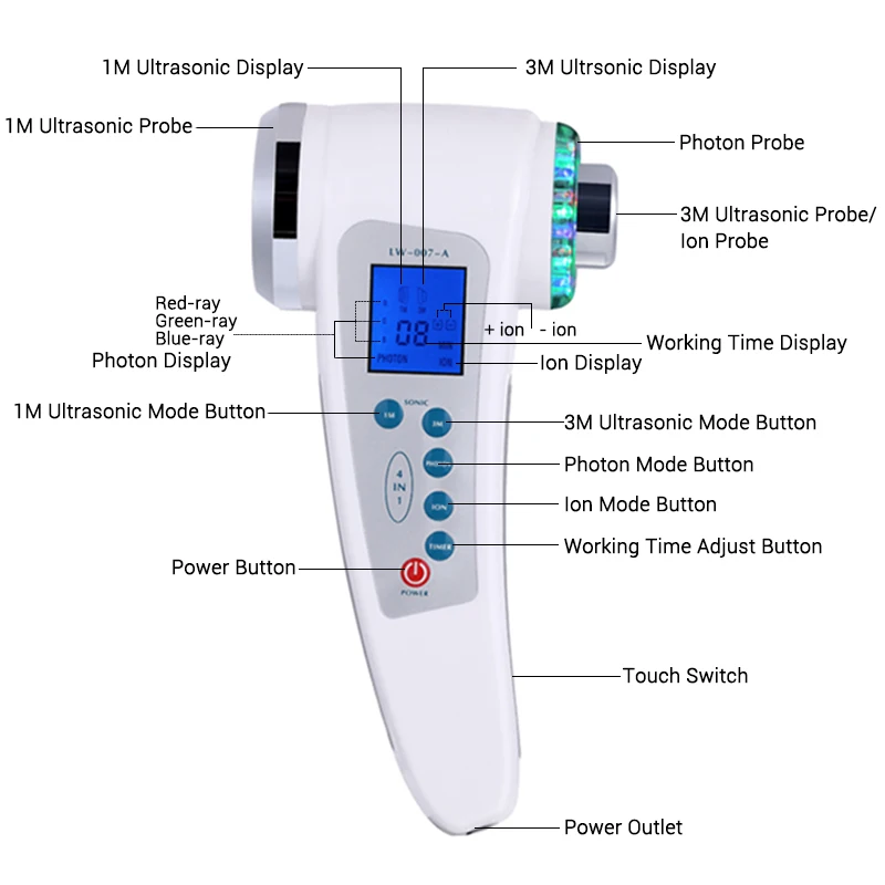 Название: 4 в 1 Ультразвуковая фотонная ионная косметическая машина