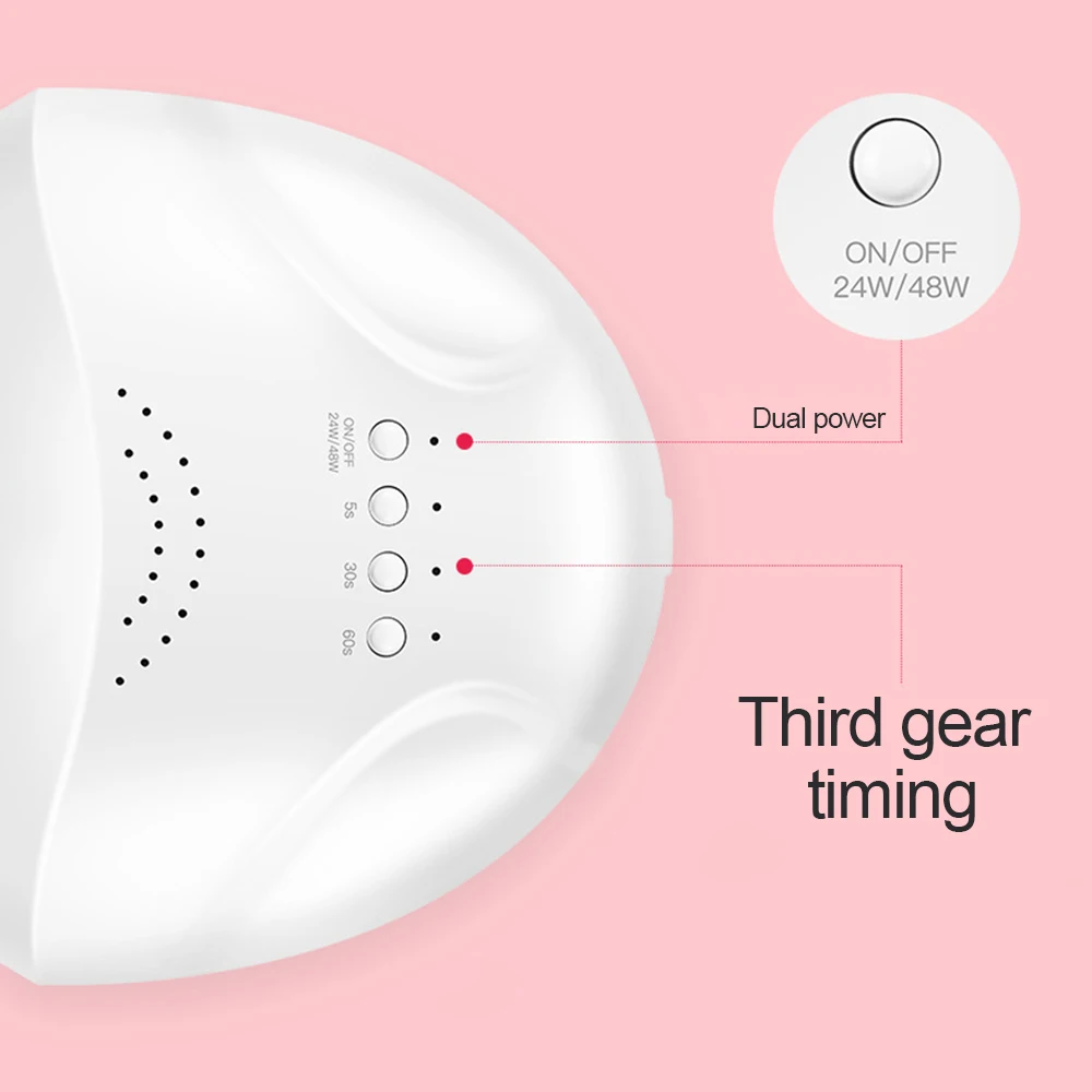 Этот продукт является профессиональным сушильщиком для лака для ногтей, обеспечивающим уход за ногтями не только для пальцев, но и для ногтей. В отличие от традиционной УФ-лампы для ногтей, кроме УФ-клея для ногтей, эта нагревательная машина также может использоваться для сушки всех других гелей для ногтей. Особенности 1. Двойной светильник: 365нм + 405нм. Отверждение всех видов гелей 2. Профессиональное использование салона 3. Белый/золотой на выбор. 4. infradred индукции 5. Кнопка включения 48 Вт 6. Таймер 5s/30s/60s 7,1 годовая гарантия 8. Размеры: 19 * 15 * 8,5 см/ 7,08 * 5,9 * 3.35in Посылка список 1 * лампа для ногтей SUNone 1 * адаптер (вилка стандарта США или ЕС) 1 * Руководство по эксплуатации на английском языке Обратите внимание 1. Пожалуйста, внимательно прочитайте руководство пользователя перед использованием. 2. Чтобы сохранить длительный срок службы, не включайте светодиоды более 600 секунд.Отзывы о других товарах