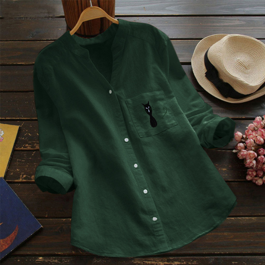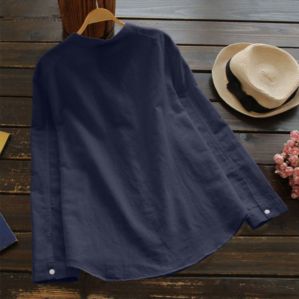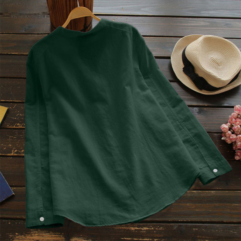 Женская Повседневная рубашка из хлопка и льна, однотонная блузка с длинными рукавами, топы на пуговицах