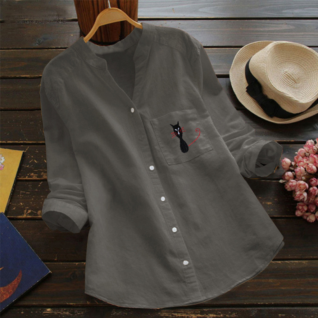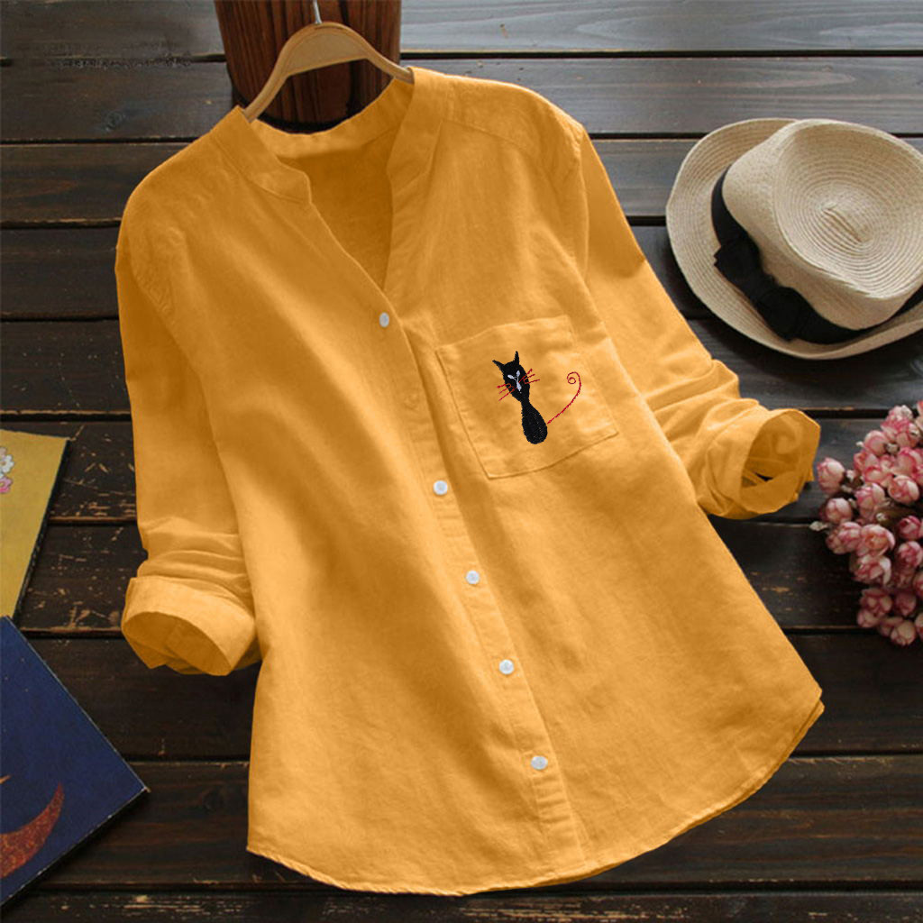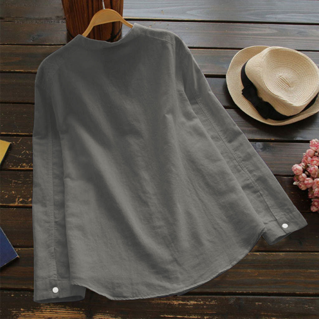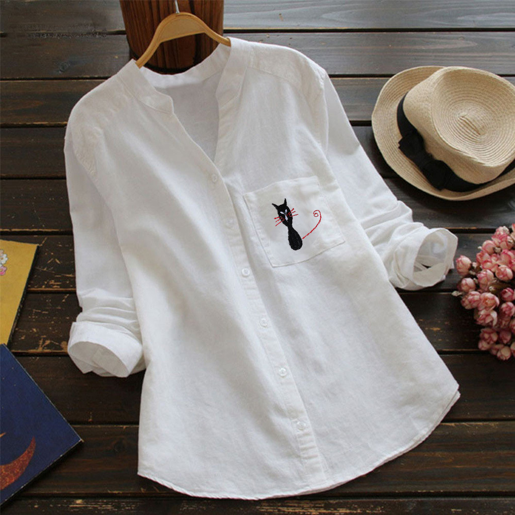 Женская Повседневная рубашка из хлопка и льна, однотонная блузка с длинными рукавами, топы на пуговицах