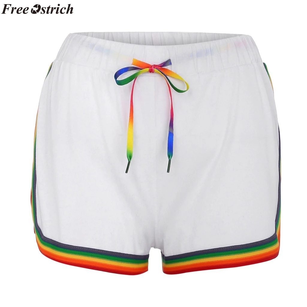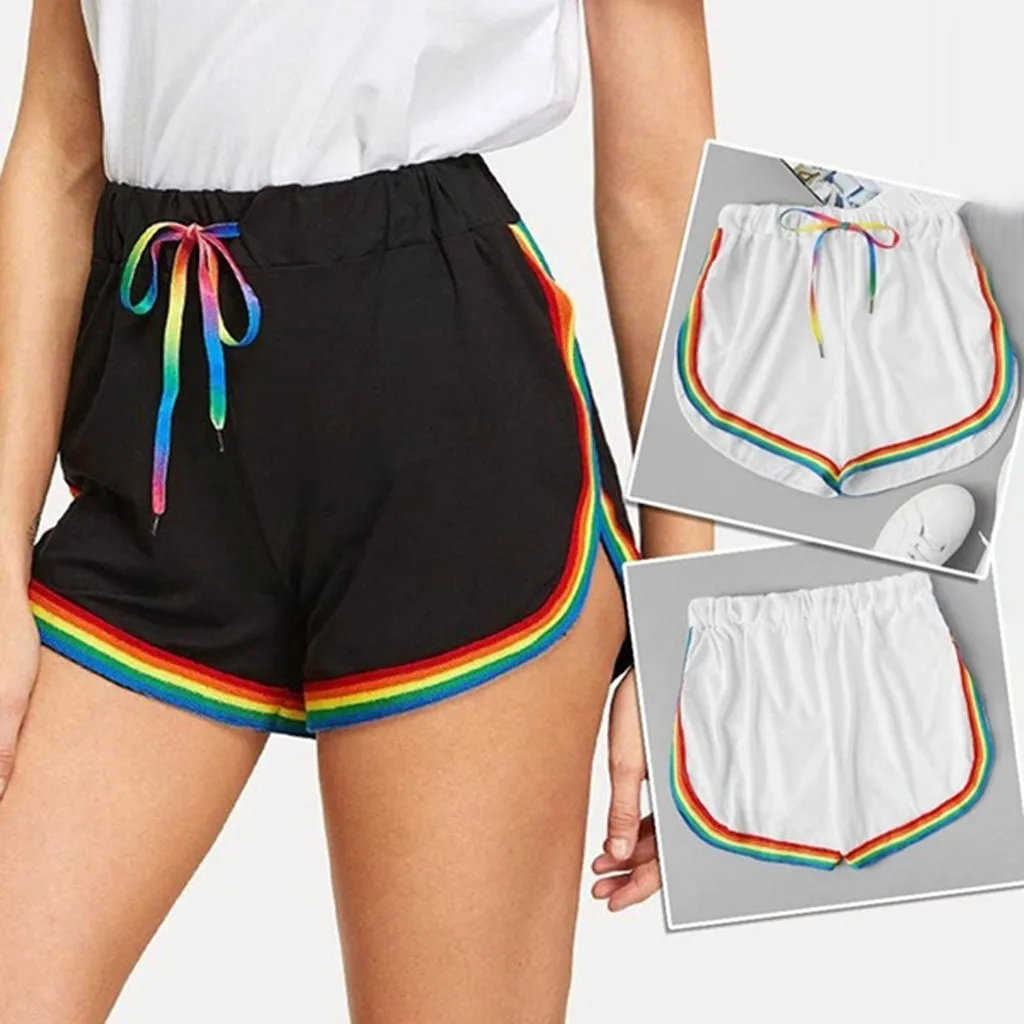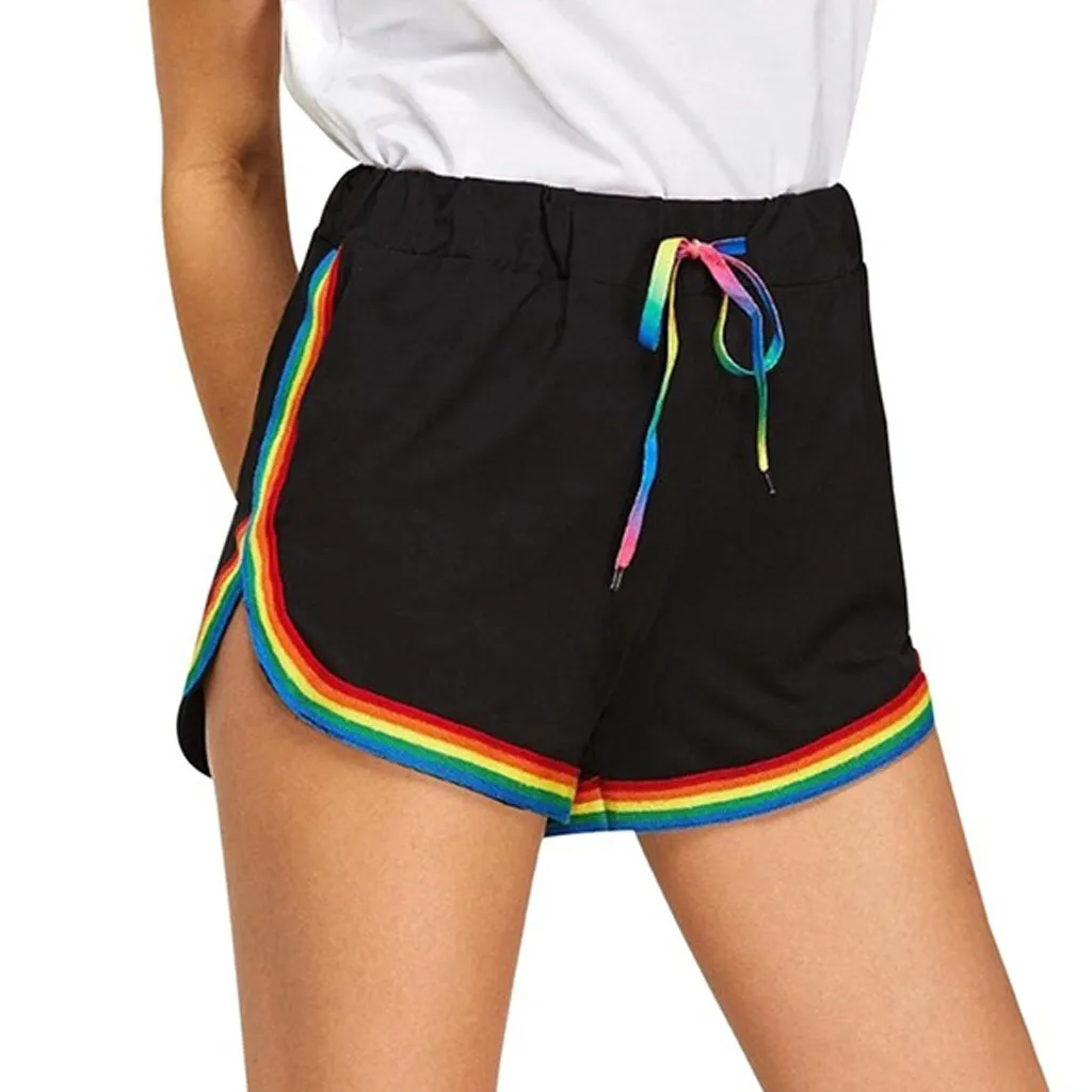 Женские повседневные шорты с принтом радуги, на шнуровке, с высокой талией, женские пляжные шорты