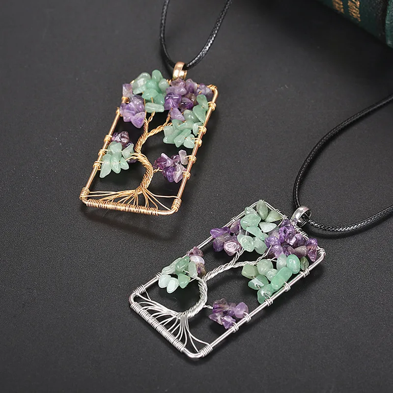 Fashion Tree of Life Pendant Necklace Wisdom Tree Chakra Reiki Healing Pendant Crystal Natural Stone Necklace Elegant Women Jewelry Gifts