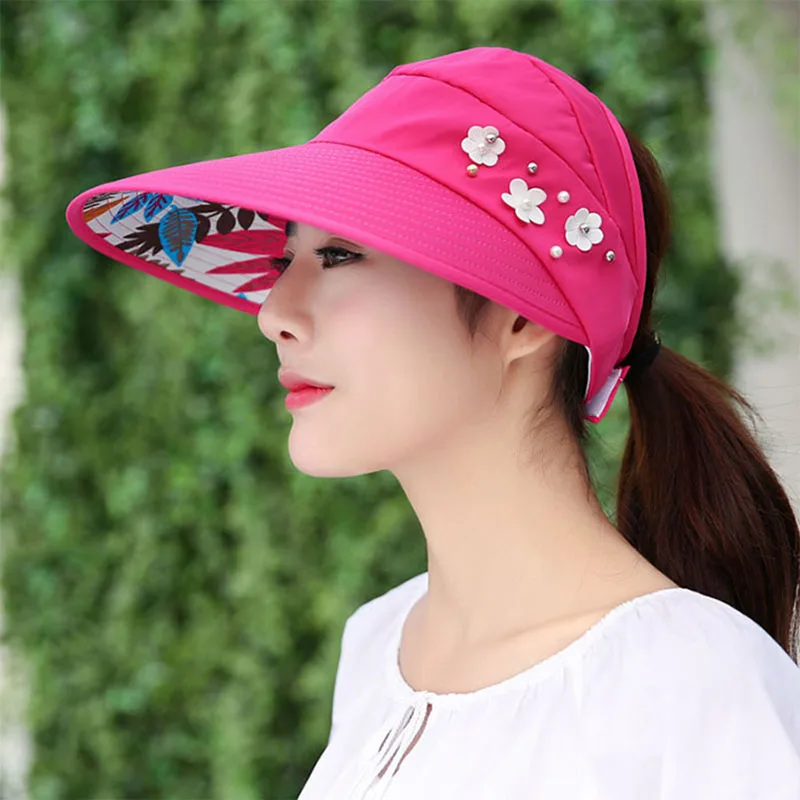 Новая Складная Солнцезащитная шляпа с защитой от УФ-лучей козырек Солнцезащитная Гибкая шляпа женская пляжная шляпа летняя шляпа с жемчужинами