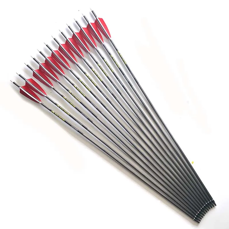 12 шт. 31 дюймовая чистая углеродная стрела ID 6,2 Spine 400 500 600 углеродная стрела с 4 'настоящим пером для соединения/изогнутого лука охоты