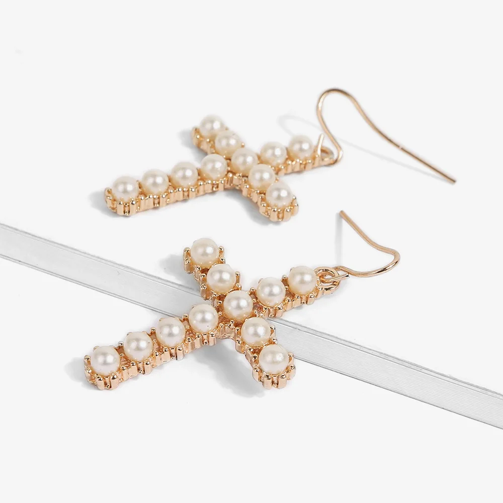 Новые серьги в европейском стиле с золотым крестом, жемчужные серьги, высокое качество, свадебный подарок для женщин