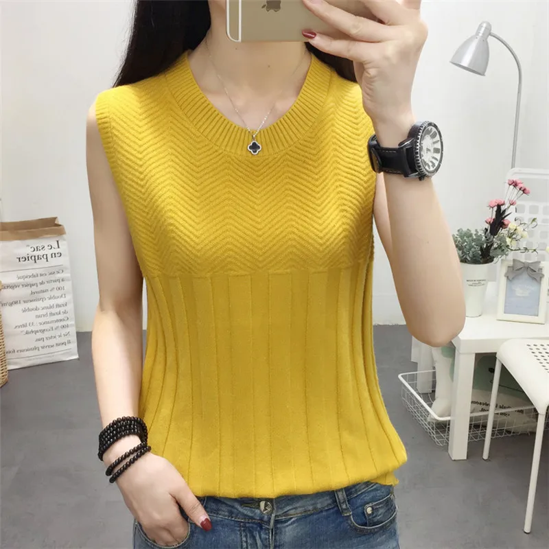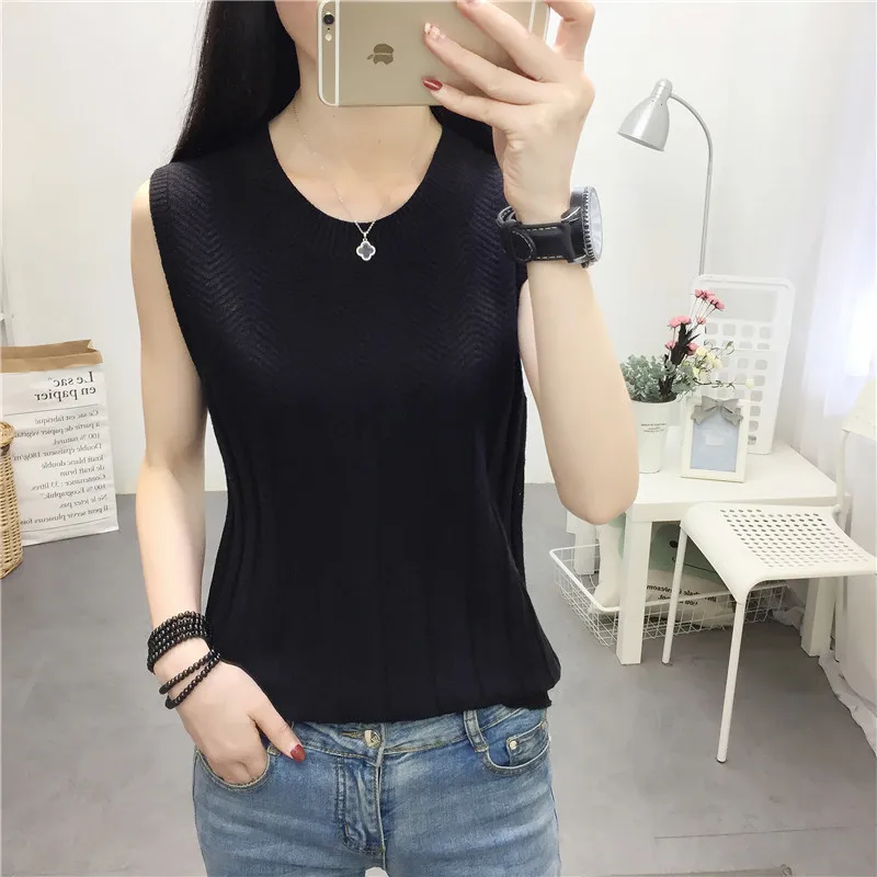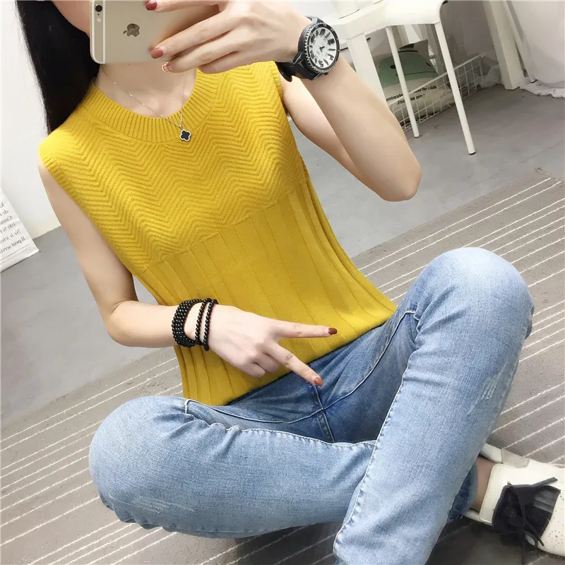 2019 Весна Лето Тонкий Трикотажный жилет Мерил майка женская Повседневная Эластичная трикотажная рубашка без рукавов основной пуловер Топы