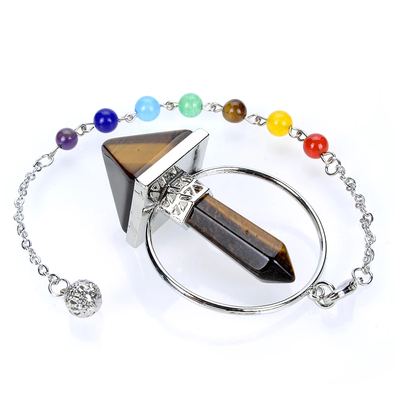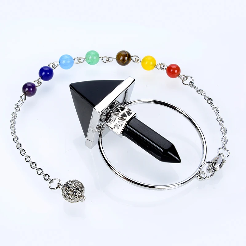Новая мода 1 шт. Натуральный Камень Роза Quartzs Граненый Конус Треугольник Пирамида цепь приданое исцеляющий маятник с чакрами с цепочками из бисера