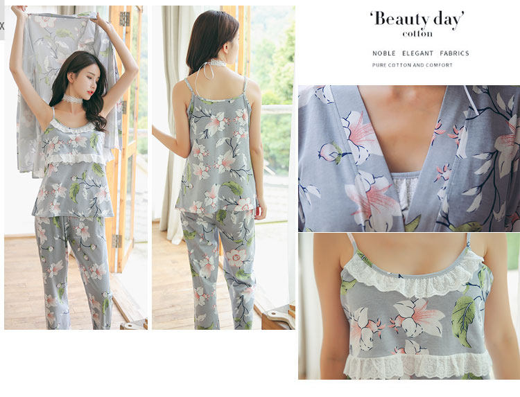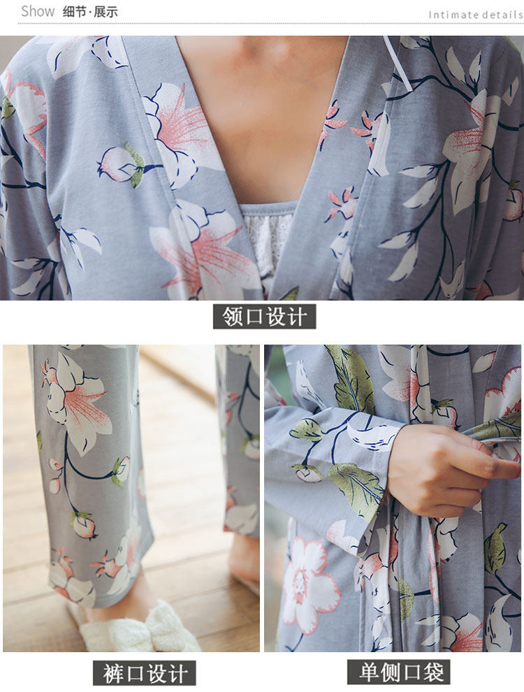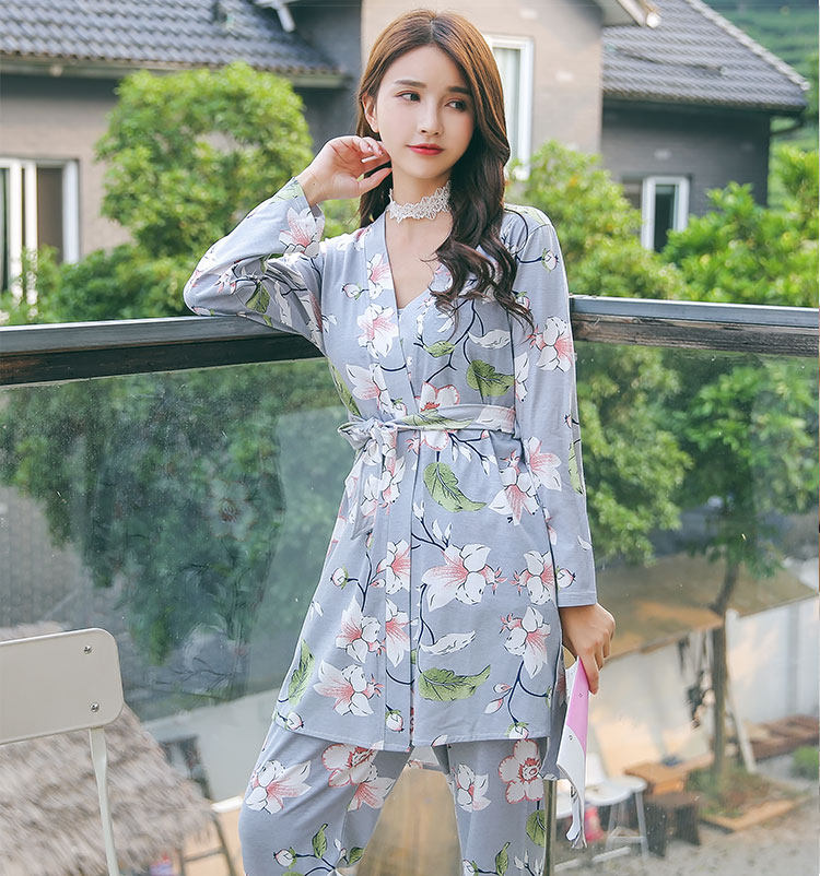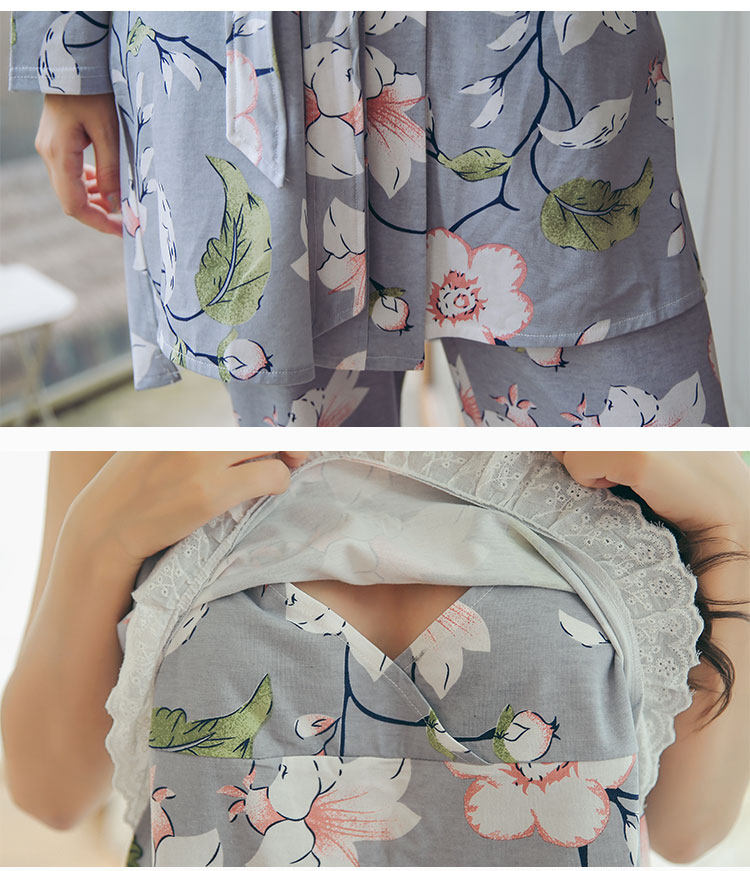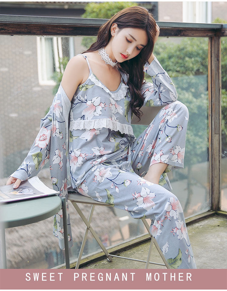 Летние пижамы для беременных; 3 предмета; Топы с цветочным принтом + пальто + брюки; Одежда для кормящих матерей; Ночное белье; Пижамы для грудного вскармливания; Одежда для сна для беременных