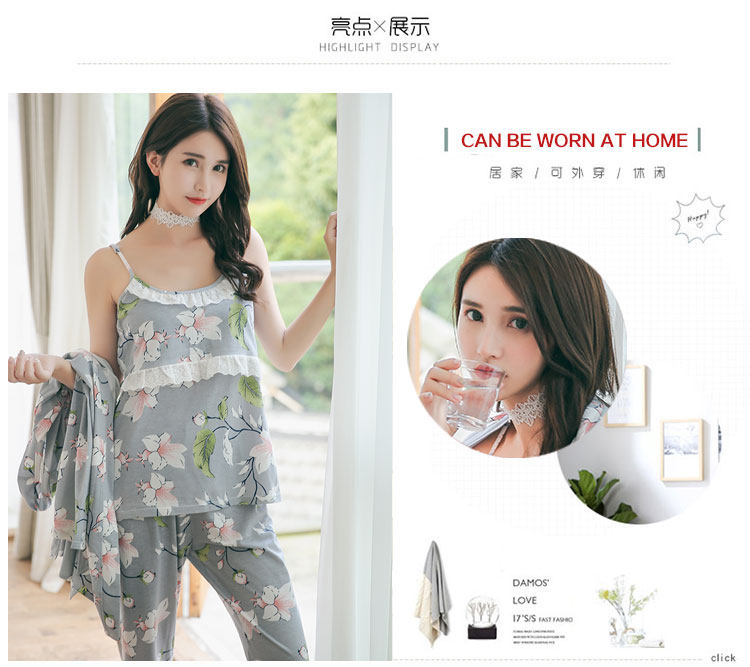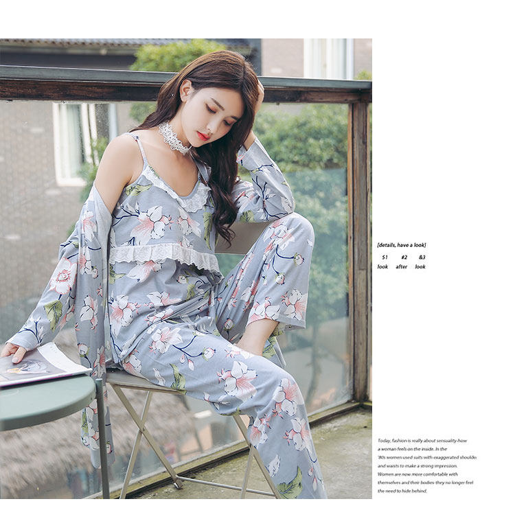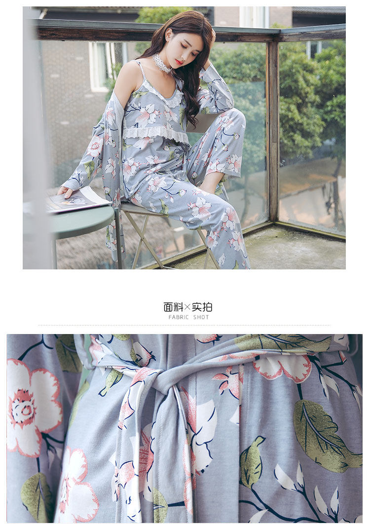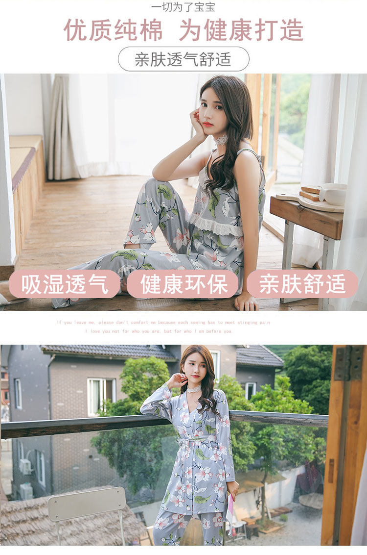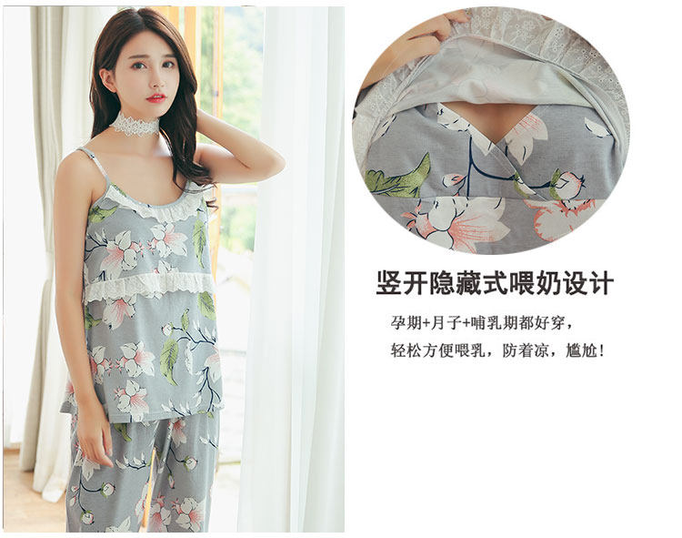 Летние пижамы для беременных; 3 предмета; Топы с цветочным принтом + пальто + брюки; Одежда для кормящих матерей; Ночное белье; Пижамы для грудного вскармливания; Одежда для сна для беременных