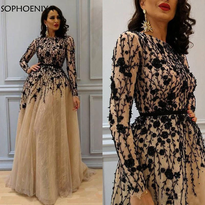 Новое поступление арабских вечерних платьев в Дубае abendkleider 2021 вечерние кружевные платья цвета шампанского официальное платье с черными кристаллами и бусинами