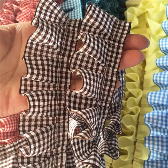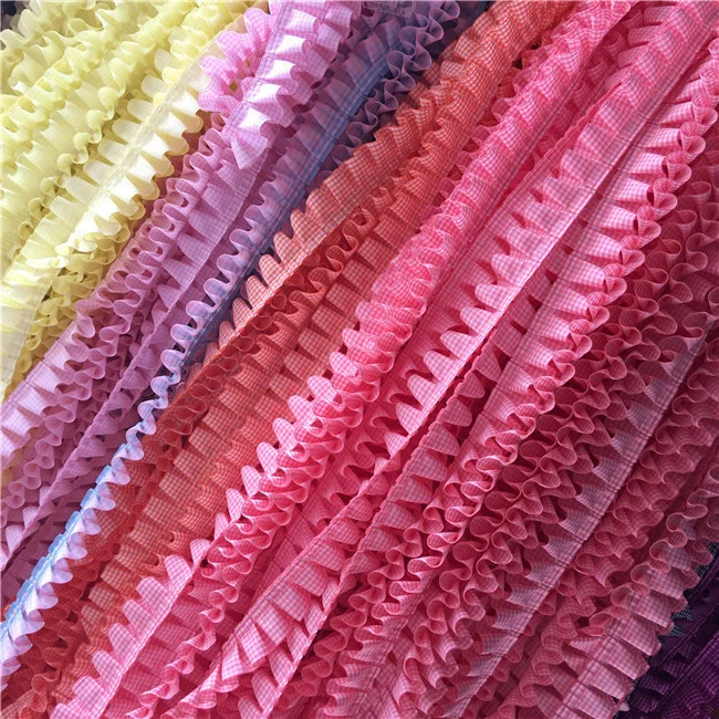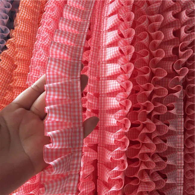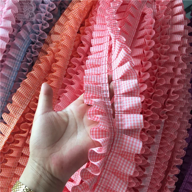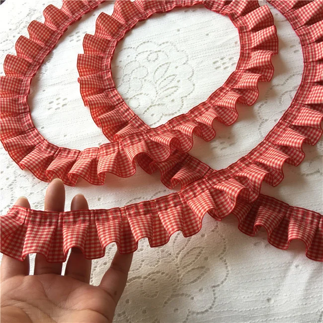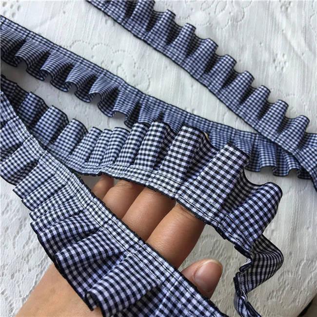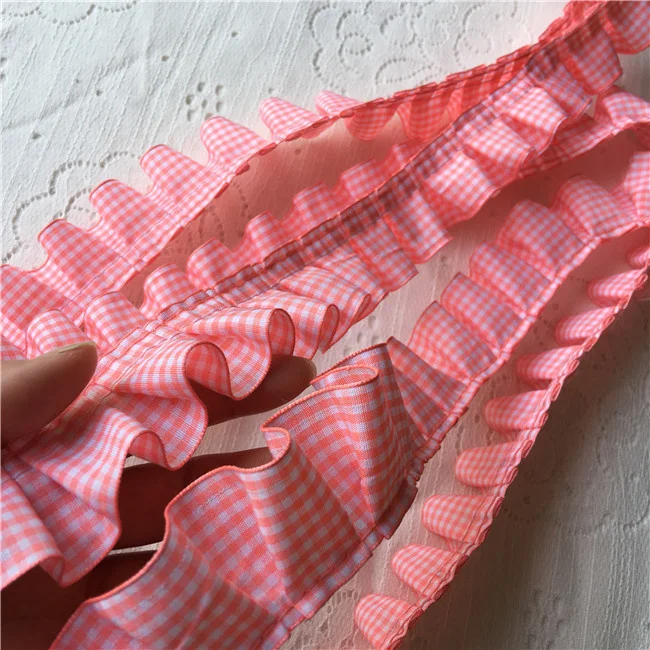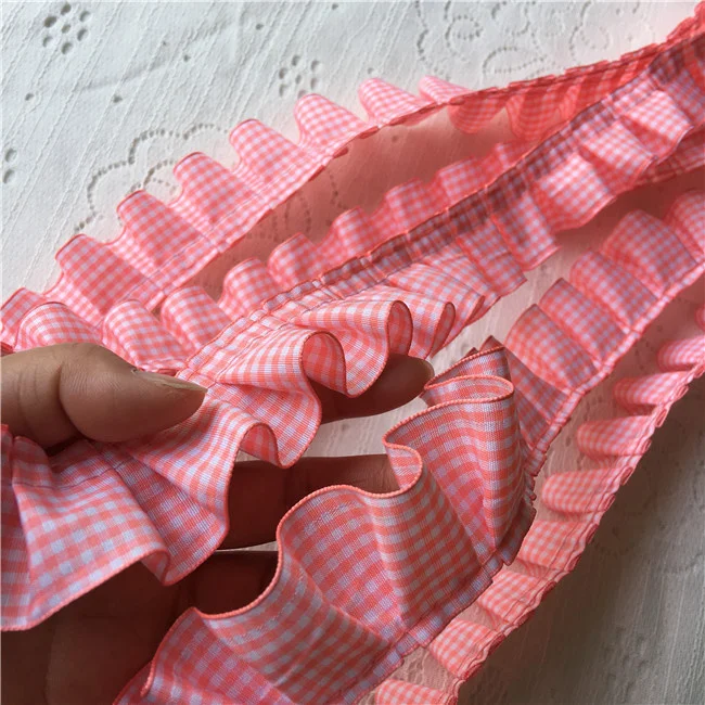 4CM Wide Plaid Pleated Cloth Lace Ruffle Ribbon Edge Trim For Collar Applique Sofa Curtain Clothing DIY Sewing Guipure Supplies