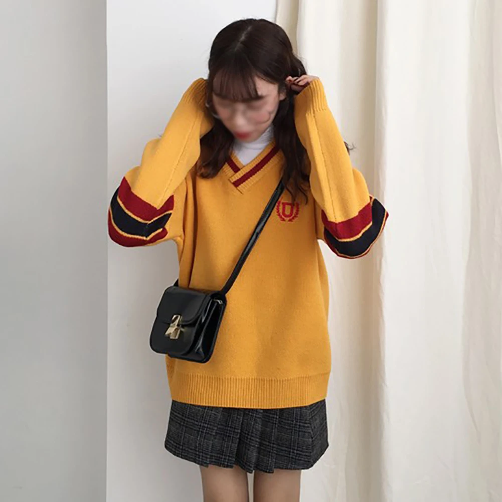 Вязаный свитер в духе колледжа, сочетающий цвет, стильный, дикий, свежий и милый.