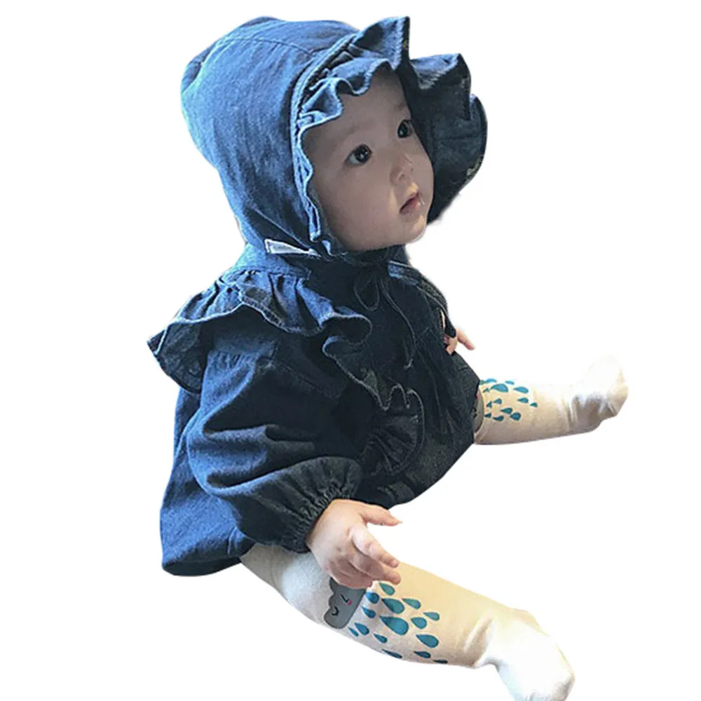 Комбинезон с длинными рукавами для новорожденных девочек + шапочка, боди, одежда из джинсовой ткани