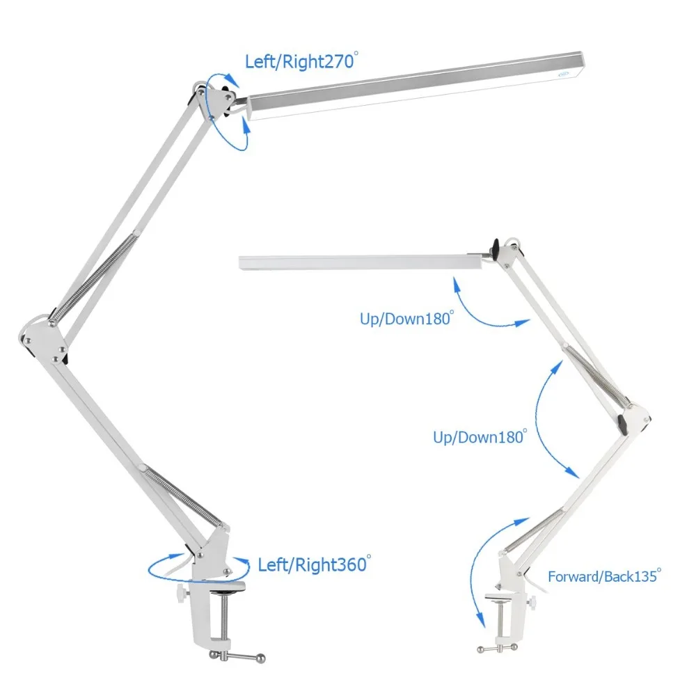 Вращающееся основание, металлический поворотный рычаг и поворотная Светодиодная панель делают его очень гибким. Таким образом, вы можете выбрать любой угол света, который вы хотите.